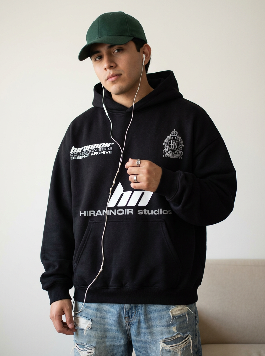 Fabricada con tela heavyweight de alto gramaje, esta sudadera ofrece una sensación robusta, densa y lujosa desde el primer contacto. Su corte oversize está diseñado para brindar una caída impecable, moderna y con presencia, elevando cualquier outfit sin esfuerzo.